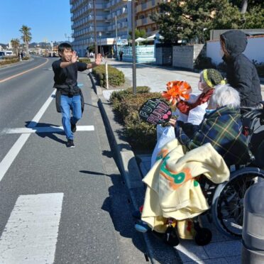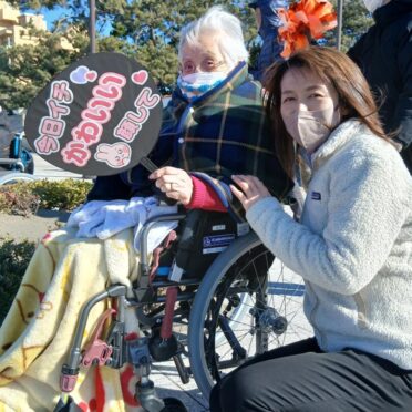 今年も若潮マラソンに慶勝会 宮川慶理事長が参加するとのことでなぎさのご利用者様と一緒に応援をしました。今年も晴れてはいましたが北風が強く吹いており、寒い一日となりました。今年はご利用者様にホッカイロをご用意したり、ブランケットを掛けたりと暖かい恰好で応援をしました。