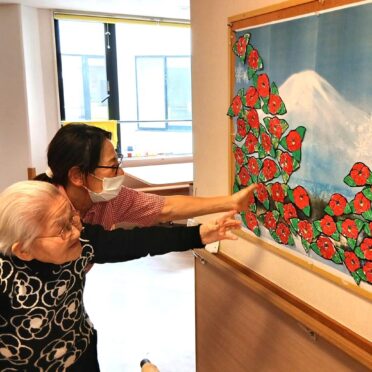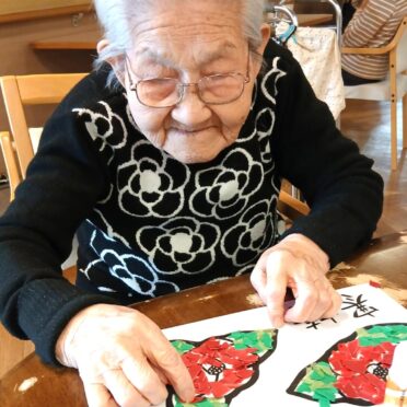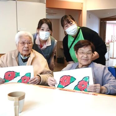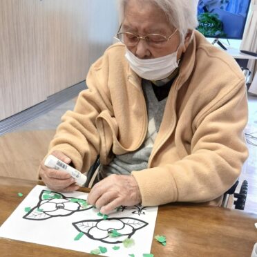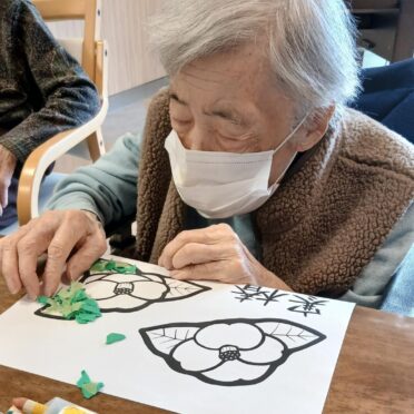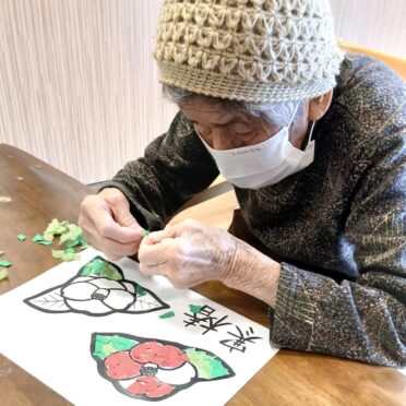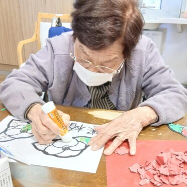 1月28日は「いいつばき」の語呂合わせで椿の日でしたね。椿の日にご入所者様と一緒に貼り絵で椿の花を作り、壁飾りとして掲示しました。満開の花が咲いたようにきれいな飾りができました。「貼り絵は初めてやったよ」「きれいにできた!」「いっぱい花を貼るときれいだね」などの声が聞かれました。