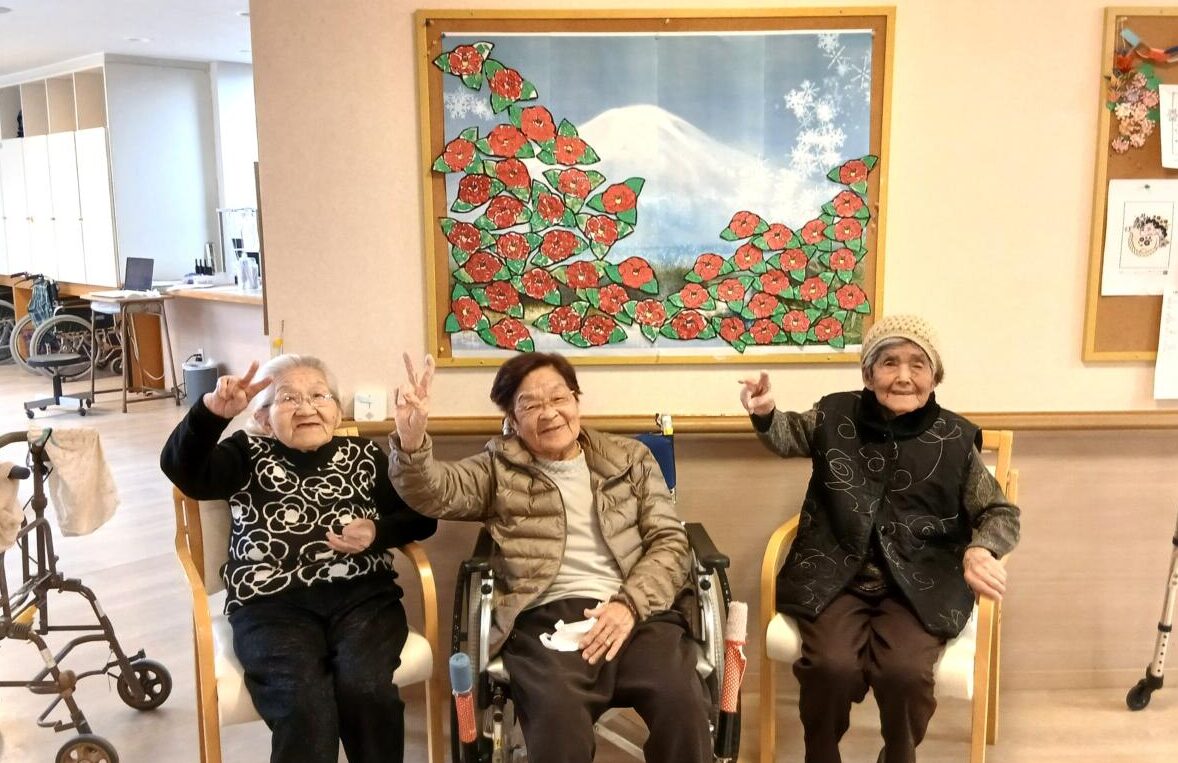 1月28日は「いいつばき」の語呂合わせで椿の日でしたね。椿の日にご入所者様と一緒に貼り絵で椿の花を作り、壁飾りとして掲示しました。満開の花が咲いたようにきれいな飾りができました。「貼り絵は初めてやったよ」「きれいにできた!」「いっぱい花を貼るときれいだね」などの声が聞かれました。