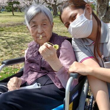 今年もご入所者様と一緒にお花見に行きました。二日間開催したお花見は、一回目は一分咲きでしたが、二回目は満開の桜を楽しむことができました。桜を見ながら、ご利用者様が春の歌を歌ってくださいました。「桜吹雪が綺麗だよ」「外で飲むお茶は美味しいね」などの声が聞かれました。