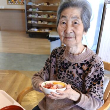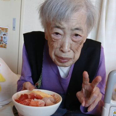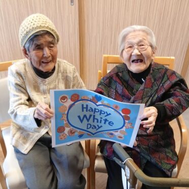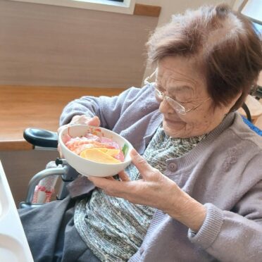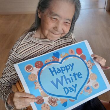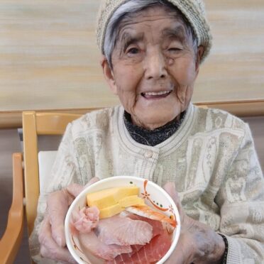 3月14日のホワイトデーにはお昼には海鮮ちらしを、おやつにはチョコレートロールケーキをお出ししました。海鮮がお好きな方が多く、お寿司や海鮮ちらしなどをお出しすると皆様とても喜ばれます。「お~!今日は海鮮ちらしなのね。嬉しい!」「今日は豪華だな」などの声が聞かれました。チョコレートロールケーキも「もう1つちょうだいよ」「美味しい!」など大好評でした。美味しく食べれるというのは何よりも幸せなことですね。