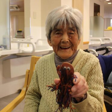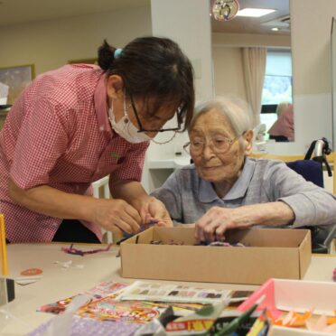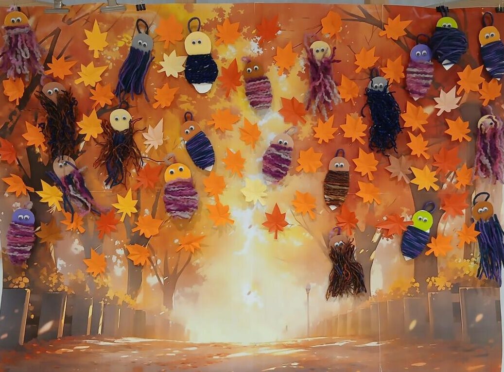 ご利用者様と一緒に作った紅葉の葉っぱとミノムシを玄関ホールに飾りました。なのはな館にお越しの際はぜひ、ご覧ください。