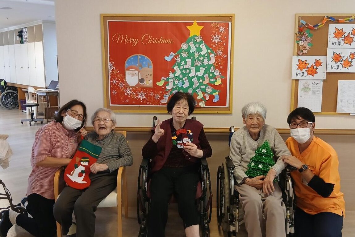 12月となり街中ではクリスマスの飾りを見かけるようになりましたね。なのはな館でもクリスマス気分を味わっていただくためにクリスマスの飾りをご入所者様と作ったり、クリスマスツリーを出して飾り付けをしました。