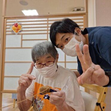 この日は、ご入所者様とリハビリを兼ねて日本の伝統文化でもある「折紙」と「お手玉」をやりました。折紙は皆様と一緒に平和の象徴「鶴」を折りました。そして、お手玉は積み上げゲームをして楽しみました。お手玉も投げるだけでなく色々な遊びができますね。楽しいリハビリとなりました。