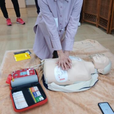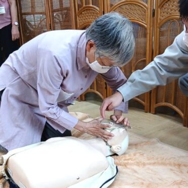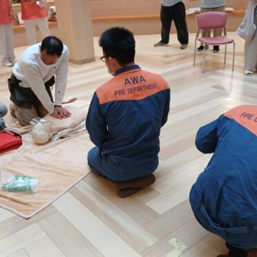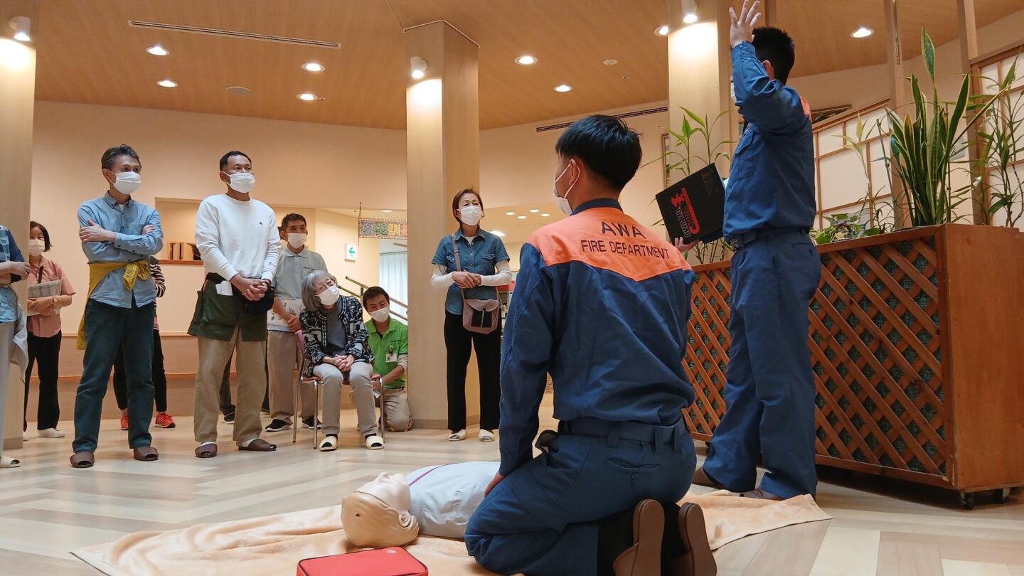 車椅子を使った避難訓練の体験、消防署職員によるAED講習、消火器の使用方法や注意点の説明などを行ないました。ご参加の方からは、とても有意義な時間になったというご意見をいただきました。今後は、定期的な開催を予定しております。近郊にお住まいの方にはお知らせ致しますので、ぜひご参加ください。