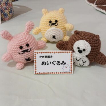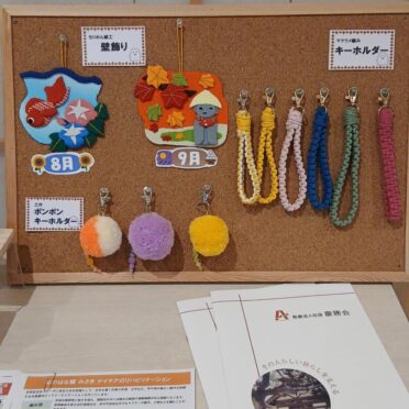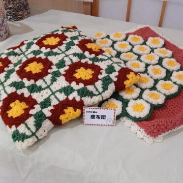 ご利用者様が作られたいろいろな作品をなのはな館みさきの玄関ホールに展示しています。編み物やキャンパス手芸が人気ですが、ちりめん細工やマクラメ編みなどに挑戦されている方もいらっしゃいます。本日は作品の一部をご紹介します。11月28日からの2日間、館山市北条の菜の花ホールでの「たてやまかいごフェスタ2025 作品展」にも出展しますので、是非お越しください。