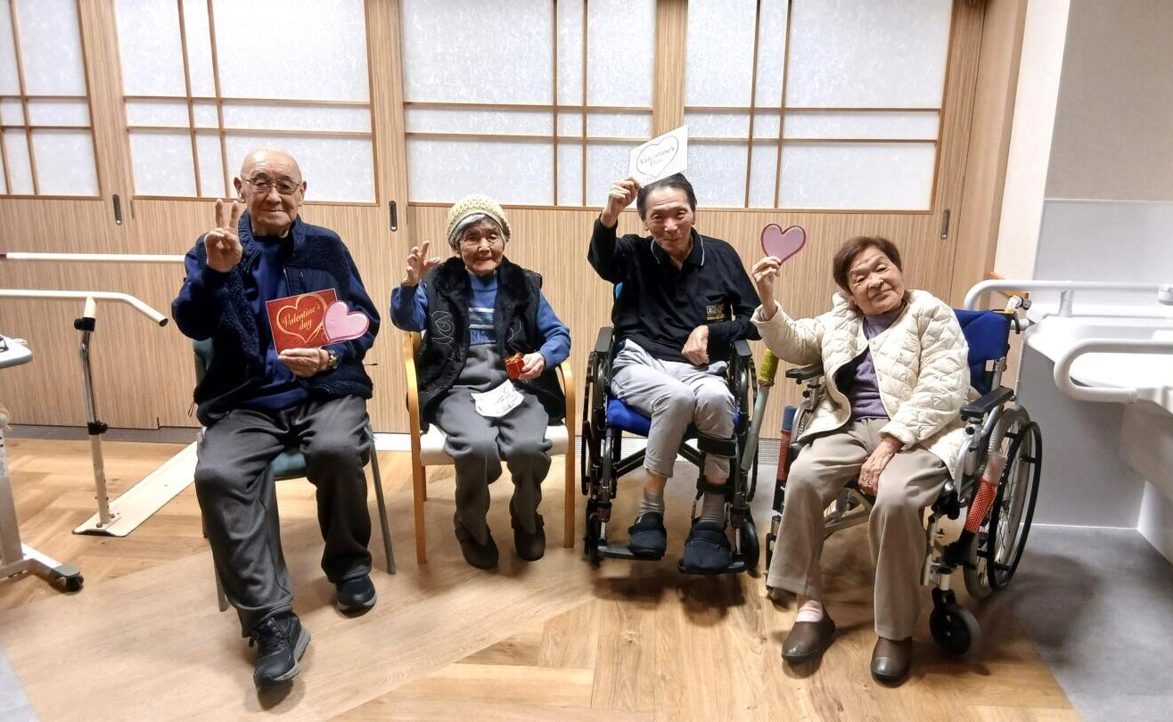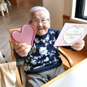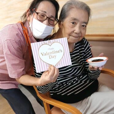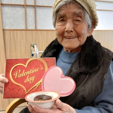 2月14日はバレンタインデー。おやつに「ガトーショコラ」をお出し、ご利用者様と記念写真を撮りました。ガトーショコラは大人気で、「これは美味しいね」「もう一個食べたいな」「そうか、今日はバレンタインデーか」などの声が聞かれました。